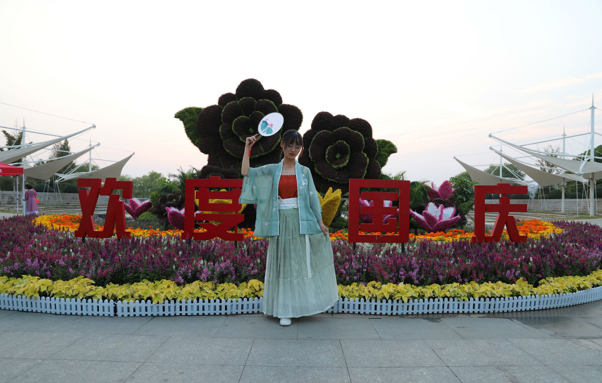 经开区国庆花展吸引汉服爱好者打卡