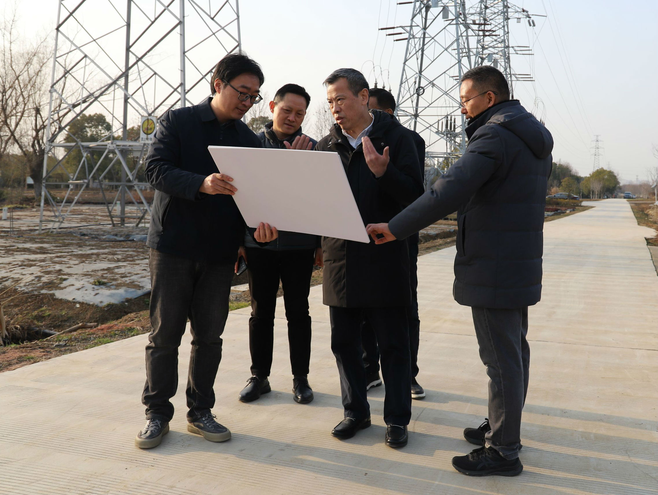 1月20日下午,工委书记、管委会主任秦远望实地调研汤口路苗圃,党政办、公用公司负责人陪同。