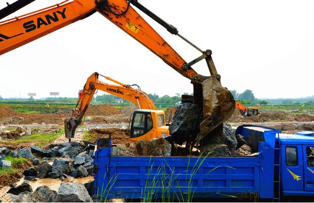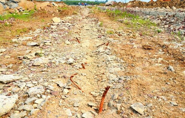 经过前期反复实地踏勘,公司组织召开专项会议,组建项目部,妥善制定施工方案,并于2014年6月4日上午准时开工。开始阶段,清理工作就遇到了不少阻碍:施工现场涉及部分遗留问题需协调处理;残留的基础开挖深度近3米,大大超过预期的1米,工程量和施工难度大大增加。为确保项目的及时性和施工质量,公司与当地政府保持密切联系,妥善处理村民遗留问题;增调挖掘机、破碎机等各类大型机械,加大基础开挖、混凝土墙体破碎进度;安排大中型卡车,及时清运土地上原有的建筑垃圾及破碎后的混凝土,并运送到指定的倾倒点;实行24小时连续作业,歇人不歇机,加快项目进程;项目经理严守现场,对施工质量和施工安全进行严格管理。