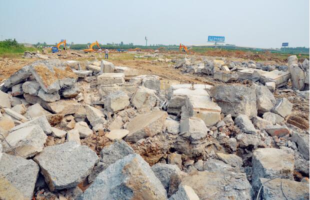 作为亚洲特大型4E级国际枢纽空港,新桥机场不仅是架在合肥与外界之间,推进信息、观念、资金、人才与资源交流的一座“桥梁”,也是展现合肥现代化滨湖大城市形象的一扇“窗”。此处实施垃圾清理的地块占地约150亩,紧邻机场高速出入口,与新桥机场也仅有数百米的距离,且位于飞机航道的正下方,地理位置十分重要。在前期机场高速建设时,原有的一处拌合站拆除不完全,遗留下来大量的建筑垃圾和地基未处理,一眼望去,残垣破瓦,严重影响机场门户形象。为此,开发区管委会高度重视,要求迅速、彻底对此处垃圾进行清理,公用公司主动请缨,接下了这项紧急而重要的任务。
