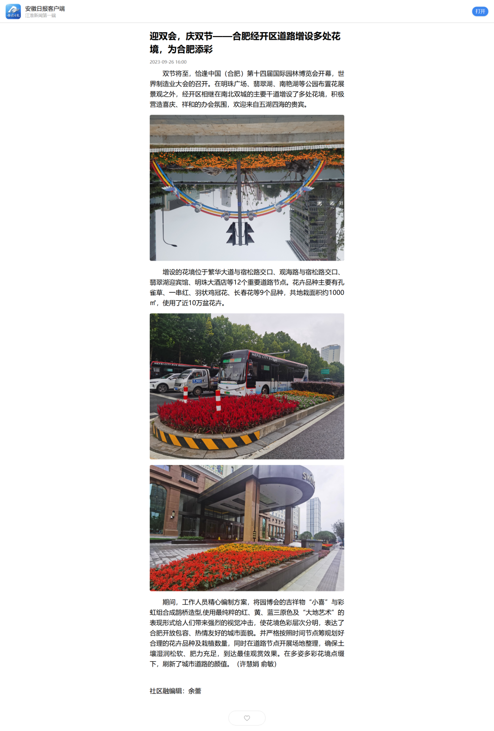 安徽日报:合肥经开区道路增设多处花境,为合肥添彩