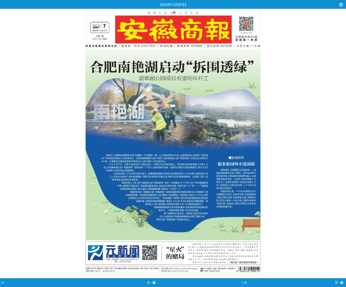 安徽商报纸媒:合肥南艳湖启动“拆围透绿”