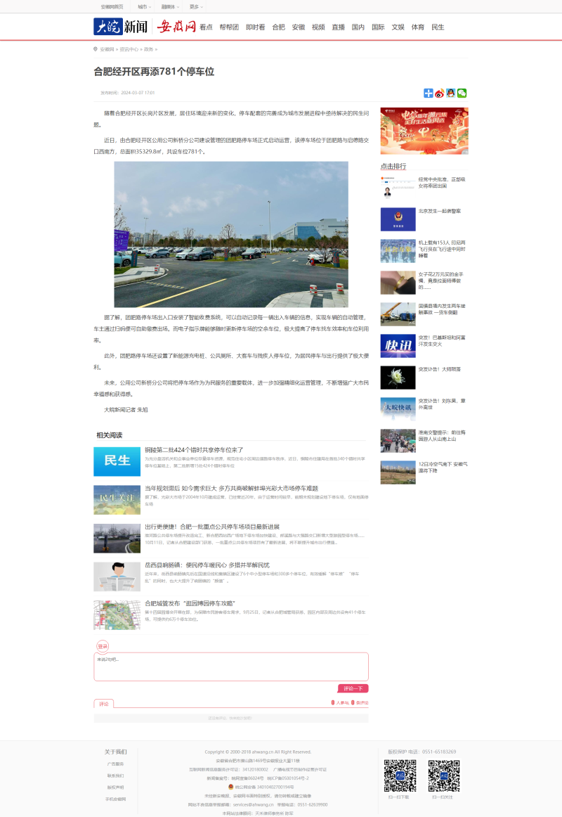 安徽网:合肥经开区再添781个停车位_大皖新闻