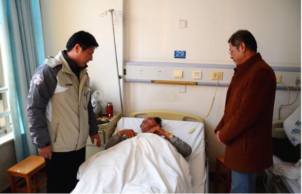 12月29日下午,公用公司党支部书记、总经理韦斌在公司工会主席卢燕翔及综合部、物业部相关负责人的陪同下,来到安医二附院骨科病房,亲切慰问在创建工作中受伤住院的香怡物业安保人员张海华。