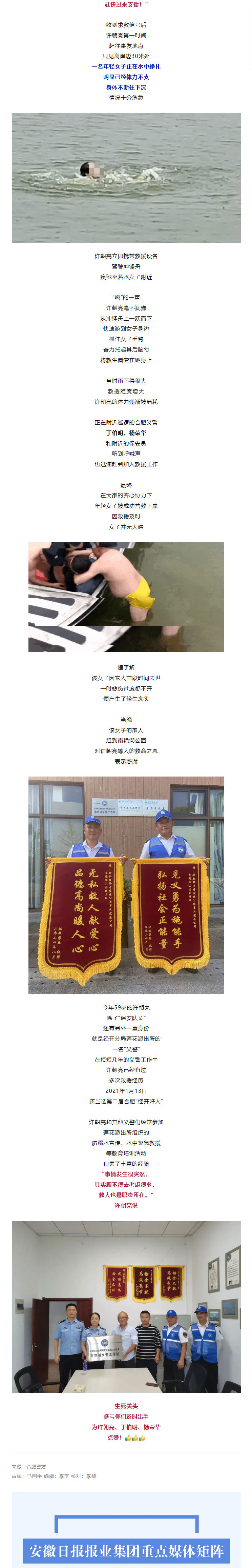 安徽商报:事发合肥一公园!59岁保安大叔跳水救人!他还有另一重身份
