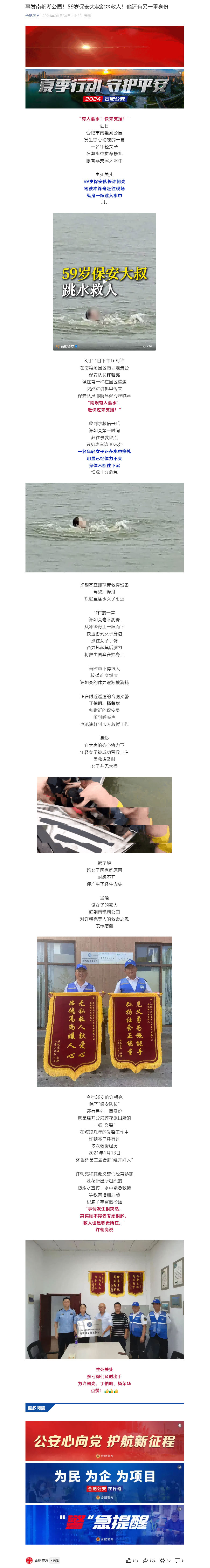下一条:安徽广播电视台:事发合肥一公园!59岁保安大叔跳水救人!他还有另一重身份