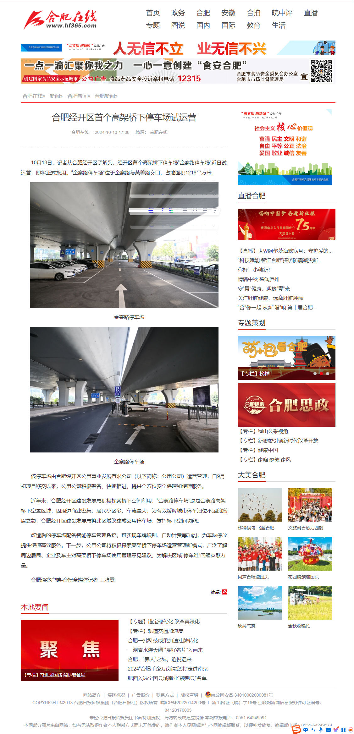 合肥在线:合肥经开区首个高架桥下停车场试运营