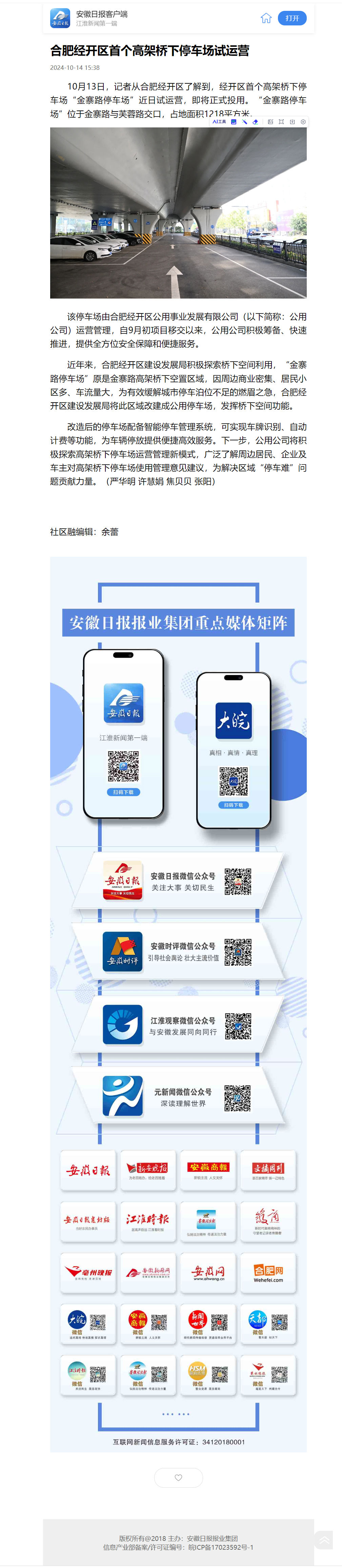 上一条:新华网:合肥经开区首个高架桥下停车场试运营