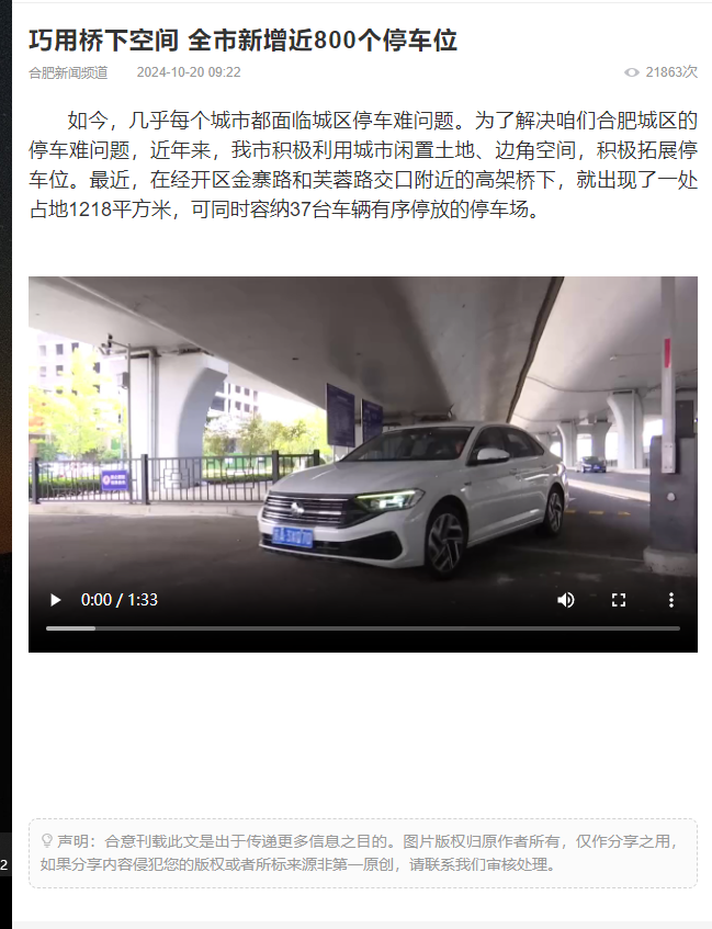 下一条:安徽广播电视台:《夜线60分》合肥经开区首个高架桥下停车场启用