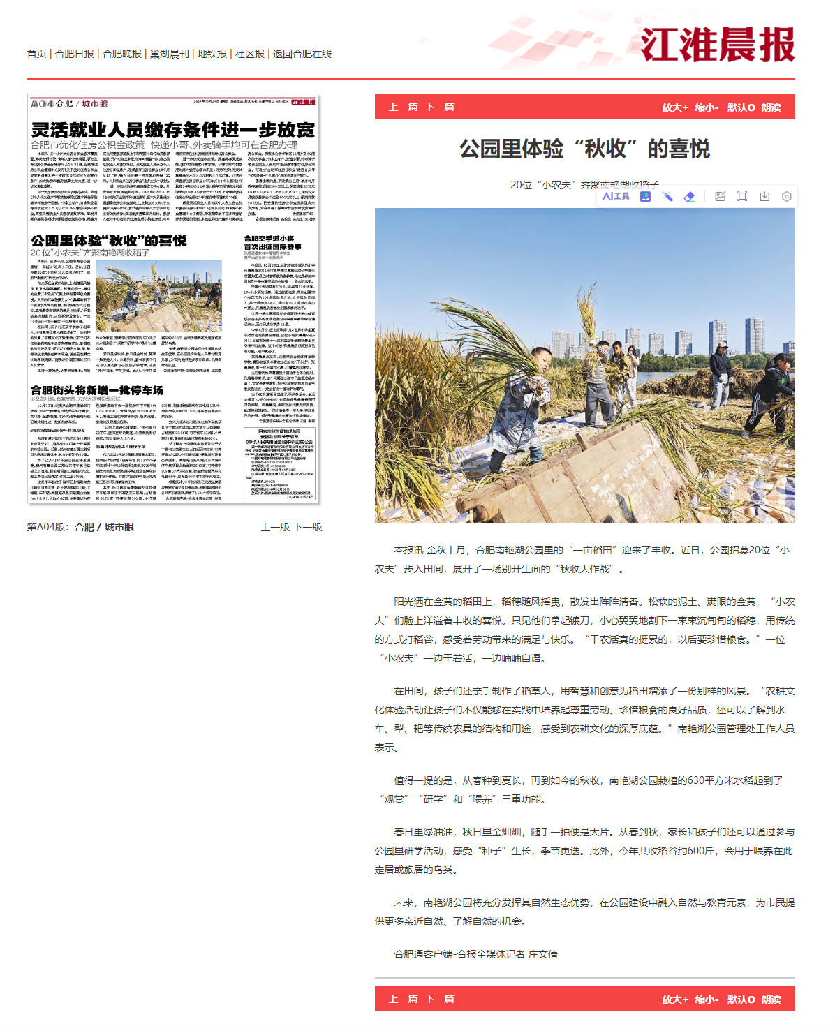下一条:合肥晚报:“小农夫”割稻投喂群鸟
