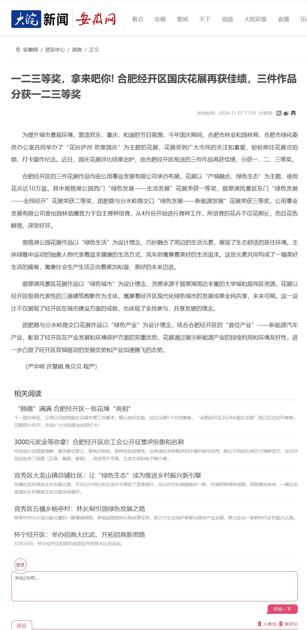 上一条:大皖新闻丨安徽网:飞“阅”合肥经开区——翡翠湖