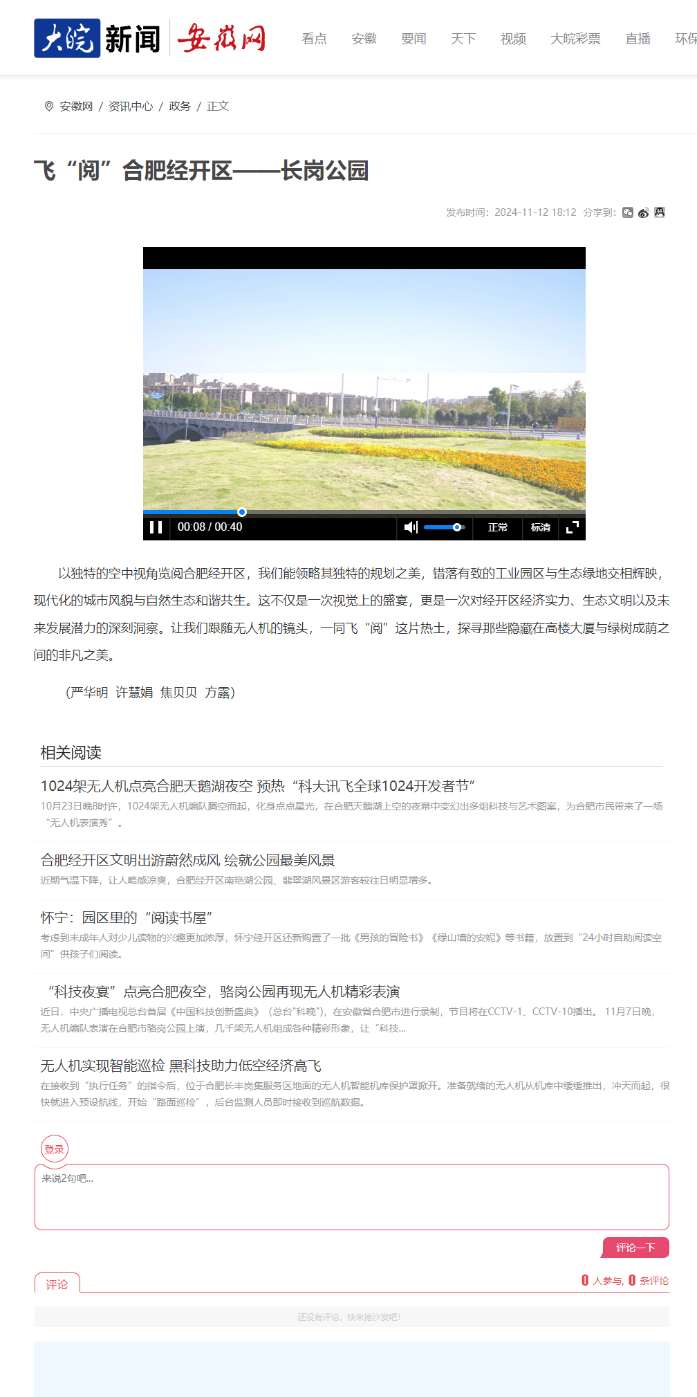 大皖新闻丨安徽网:飞“阅”合肥经开区——长岗公园