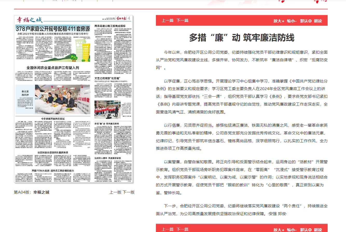 合肥日报:多措“廉”动 筑牢廉洁防线