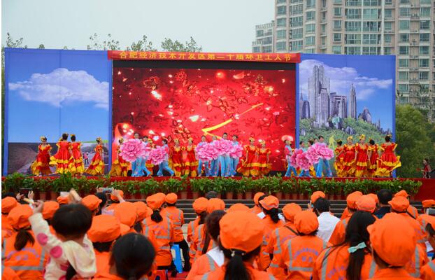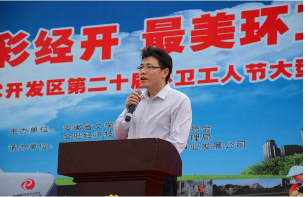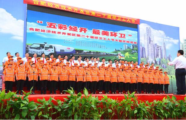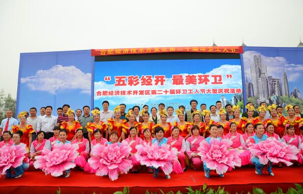 10月25日,在环卫工人节即将到来之际,合肥经开区“第20届环卫工人节庆祝活动”在徽园世纪广场隆重举办。此次庆祝活动是由合经区管委会、安徽省文联主办,合经区城管局、合经区公用事业发展公司承办。合经区工委委员、管委会副主任孙余洲,工委委员李应天,省文联副巡视员江枫,省摄影家协会主席陈志勇,省音乐家协会副主席谢林义,区城管局局长张义权,公用公司总经理韦斌及各相关单位领导到场,与现场三百余名开发区环卫工人代表、省文联艺术家共同参加此次活动。