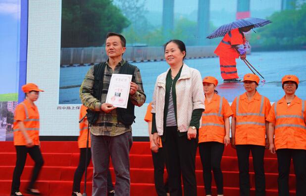 环卫摄影大赛的颁奖是此次活动的一项重要环节。此次以环卫事业为题材的摄影大赛自2015年9月13日启动以来,至10月12日截稿日,先后收到百余名摄影家共1500余幅作品,经过省文联专家组认真评审,最终有70幅作品脱颖而出,其中一等奖1名,二等奖3名,三等奖6名,优秀奖60名,这些作品也专门制作了画板在活动现场周边摆放,引来众多观赏。