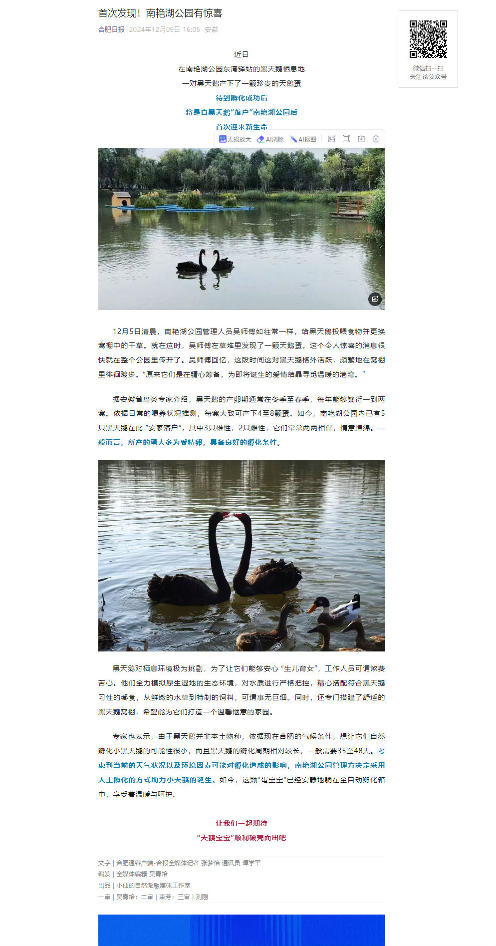 下一条:合肥在线:南艳湖黑天鹅产下“蛋宝宝”
