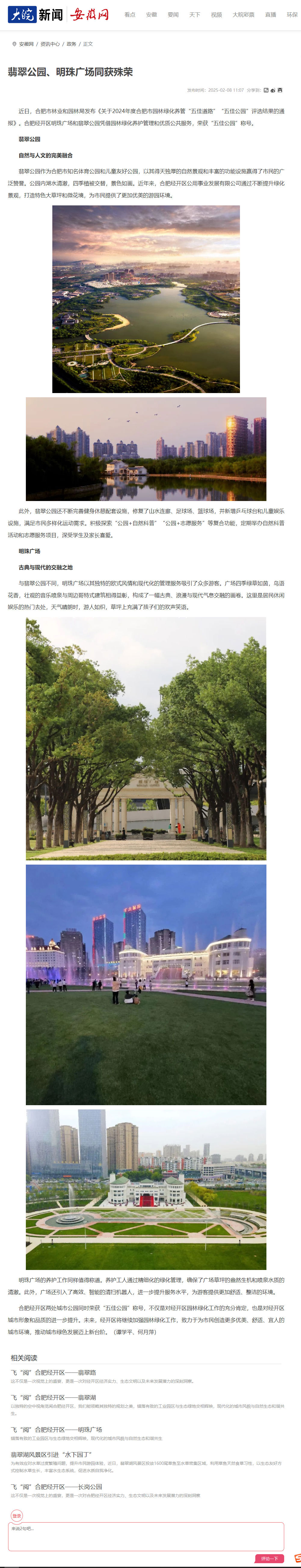 大皖新闻丨安徽网:翡翠公园、明珠广场同获殊荣