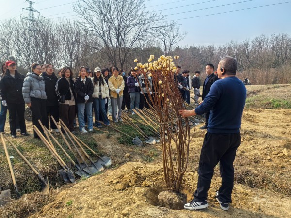 本次活动以“植树添绿、共建生态文明,携手同行、共创美好家园” 为主题,于 3 月 10 日上午在汤口路苗圃顺利开展。活动当天,合肥工业大学建筑与艺术学院的师生代表与香怡园林公司支部全体党员、积极分子及部分群众代表齐聚汤口路苗圃基地,共同参与义务植树。大家齐心协力,挥锹铲土、扶苗填坑、浇水灌溉,亲手种下一株株树苗,为大地增添了新绿。