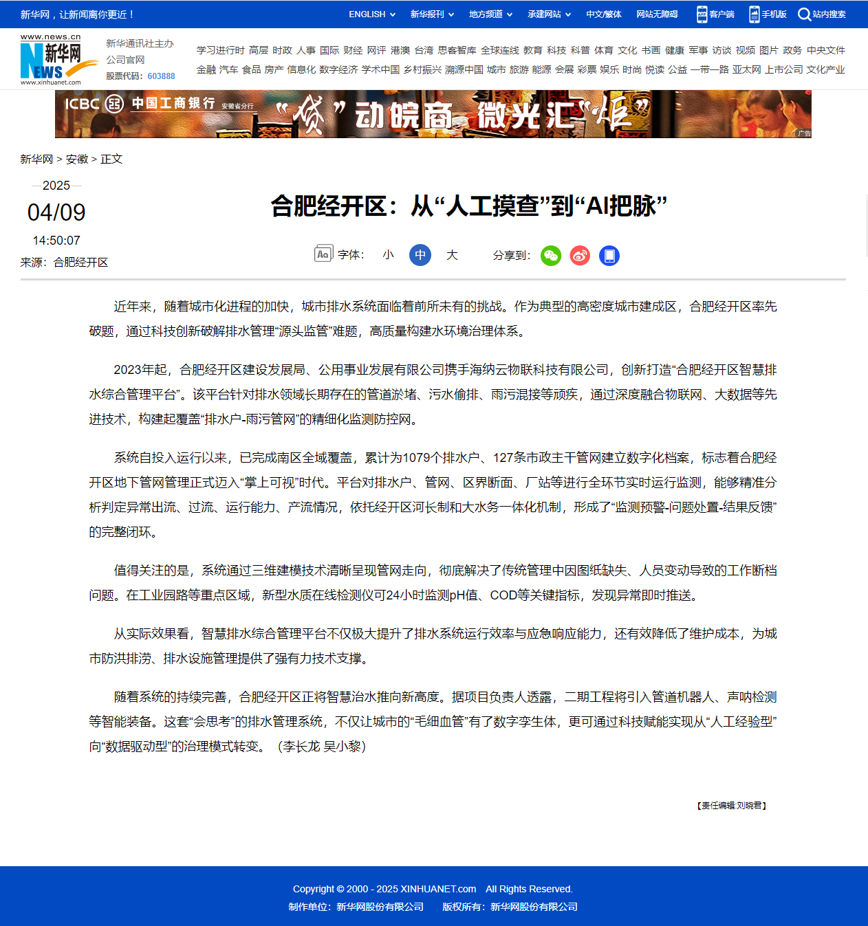 新华网:合肥经开区:从“人工摸查”到“AI把脉”