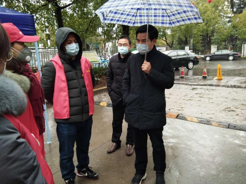 2月15日上午,合肥市疫情防控第四督导组组长、市直机关工委书记叶志明到经开区莲花社区朝霞园小区,督查指导安置房疫情防控工作。