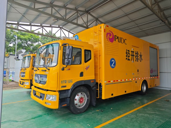 在核心设备维护上,排水中心对各个排涝泵站的水泵和配套机械设备展开专项维护保养,确保排水设备性能保持最佳状态,可随时投入高强度排水作业。同时,为保障短强降雨天气过程中设备运行工况稳定,中心提前完成区内各主要泵站的汛前清淤工作,保证水流通道畅通。自5月起,蓬莱路泵站的9台大功率潜水轴流泵已完成调试,在箱涵水位超过 6.9 米警戒线,可立即启动,极端天气时能够以每秒 21.8 立方米出水量迅速将雨水排入派河。目前,公司管理的9座雨水排涝泵站和相关设施防汛准备工作已全部就绪,已全面进入24小时“备战状态”。