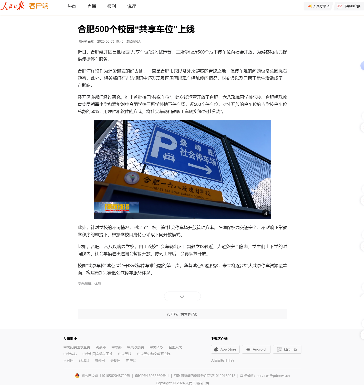 人民日报丨客户端:合肥500个校园“共享车位”上线https://www.peopleapp.com/column/30049841961-500006410245