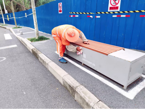 作业中采用“人工+机械”协同模式:保洁人员手持工具清理背街小巷、绿化带杂物;南艳湖公园、天门路小吃街等人流密集区,启用“早普扫+午补扫+晚精扫+全天巡查”四级保障,夜间加派冲洗班组;交通护栏、公交站台等设施按“一冲二刷三擦”标准清洁,破损果皮箱及时更换,“牛皮癣”彻底清除,城市家具焕新颜。