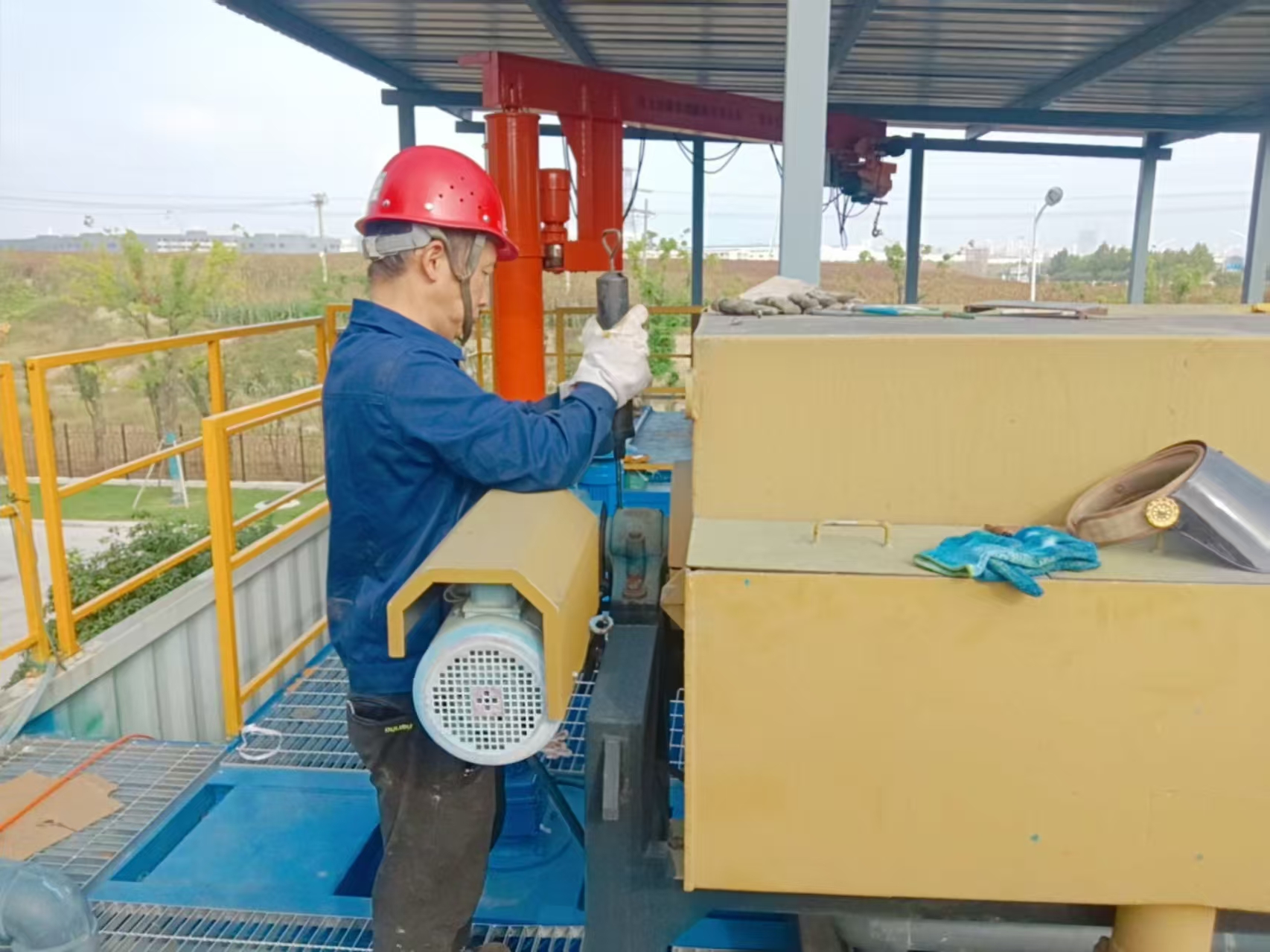 近期,排水中心聚焦设施稳定运行与水质保障,组织专业力量对位于蓬莱路泵站的超磁水处理一体化设备开展全面大修维保工作,确保排水处理系统高效可靠。