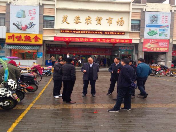 1月6日上午,合肥经济技术开发区党工委书记、管委会主任杨伟来到芙蓉农贸市场,视察芙蓉农贸市场环境整治工作,工委办、管办、城管局、芙蓉社区委、公用公司等相关单位负责人陪同。