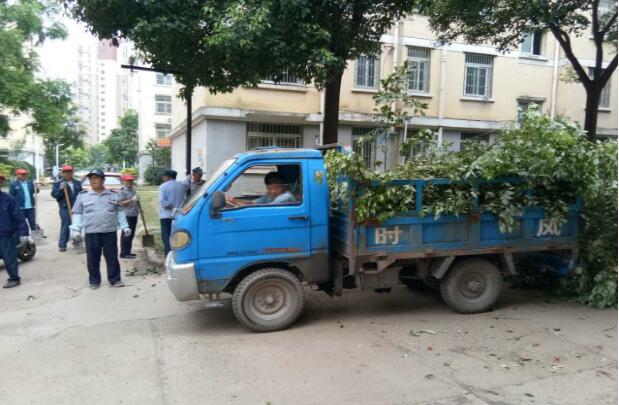 清理小区内断枝枯树及堆放杂物