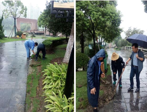 9月2日、9月3日,双休日,天空更是淅沥沥下起了小雨,然而公用公司人文明创建的热潮却丝毫没有减退,他们主动放弃休息,加班加点。他们清除杂草,清理枯枝落叶,铺设草皮,清理灰砂带,捡拾漂浮物,疏通排水管,劝导文明经营,营造文明氛围,在大街小巷,广场公园,小区市场,到处都能看到这些冒着秋雨,默默无闻、辛勤付出的创建人。