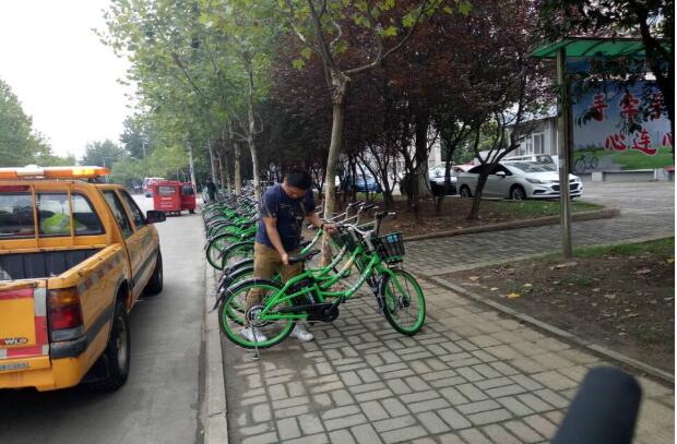 整理路边随意停放的共享单车