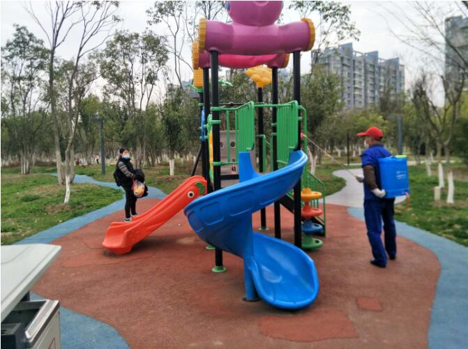 因目前仍处疫情管控期间,南艳湖园区加强消杀频次和巡查小组人员建设,一方面保洁人员每日对办公区域、工作车辆、岗亭、停车场、公厕、儿童游乐及体育健身设施、桥梁扶手等公共区域进行消毒,且频次不少于4次;另一方面,邀请4位市民园长加入维护游园秩序的队伍,倡导游客不聚集、不搭帐篷野餐、不采摘花枝佩,并戴好口罩。保障游客游园环境安全,游客安心