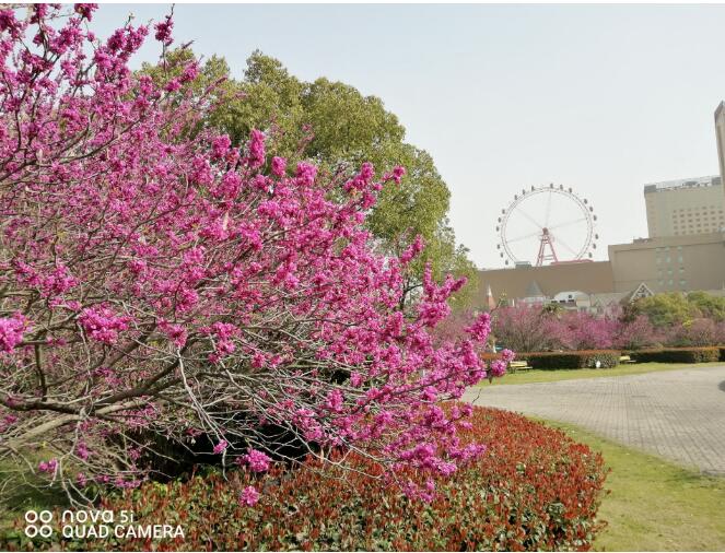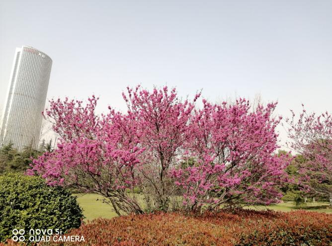 草长莺飞、百花盛放的庐州三月正是人们踏春的好季节。经开区明珠广场内的紫荆正在盛开,清香四溢,灿若红霞的紫荆花如夕阳下的殷红云霞一般,与遍地的绿草鲜花融为一体,构成一幅令人陶醉的画卷。