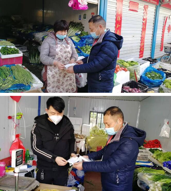 2月3日开始,为切实完善菜市场内疫情防控工作,确保每个经营户正确、及时戴上防护口罩,公用公司按一户两个的标准,通过各菜市场管理处为在营业的经营户送上了医用防护口罩。现场,管理处工作人员示范了口罩的正确戴法,并叮嘱经营户“做好科学防护,既是保护自己也是保护他人”。