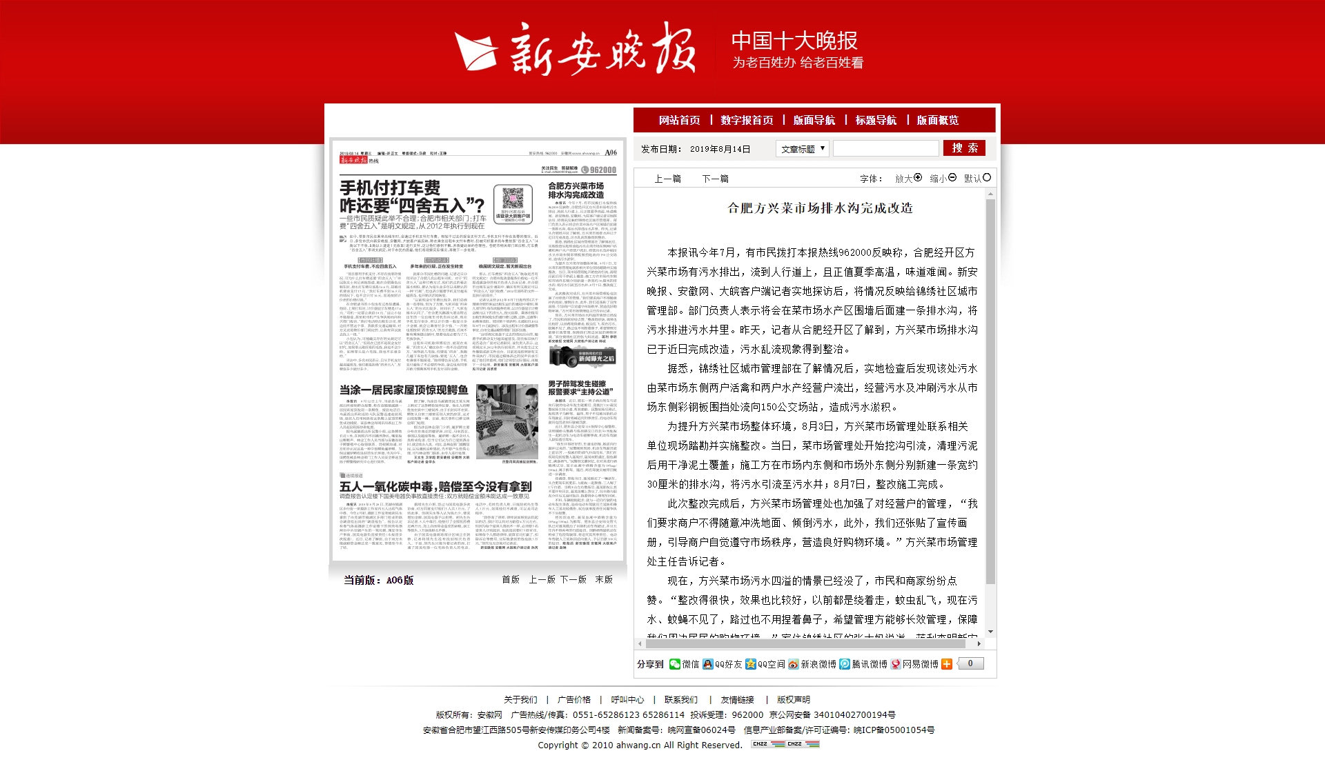 新安晚报8月14日第6版:合肥方兴菜市场排水沟完成改造