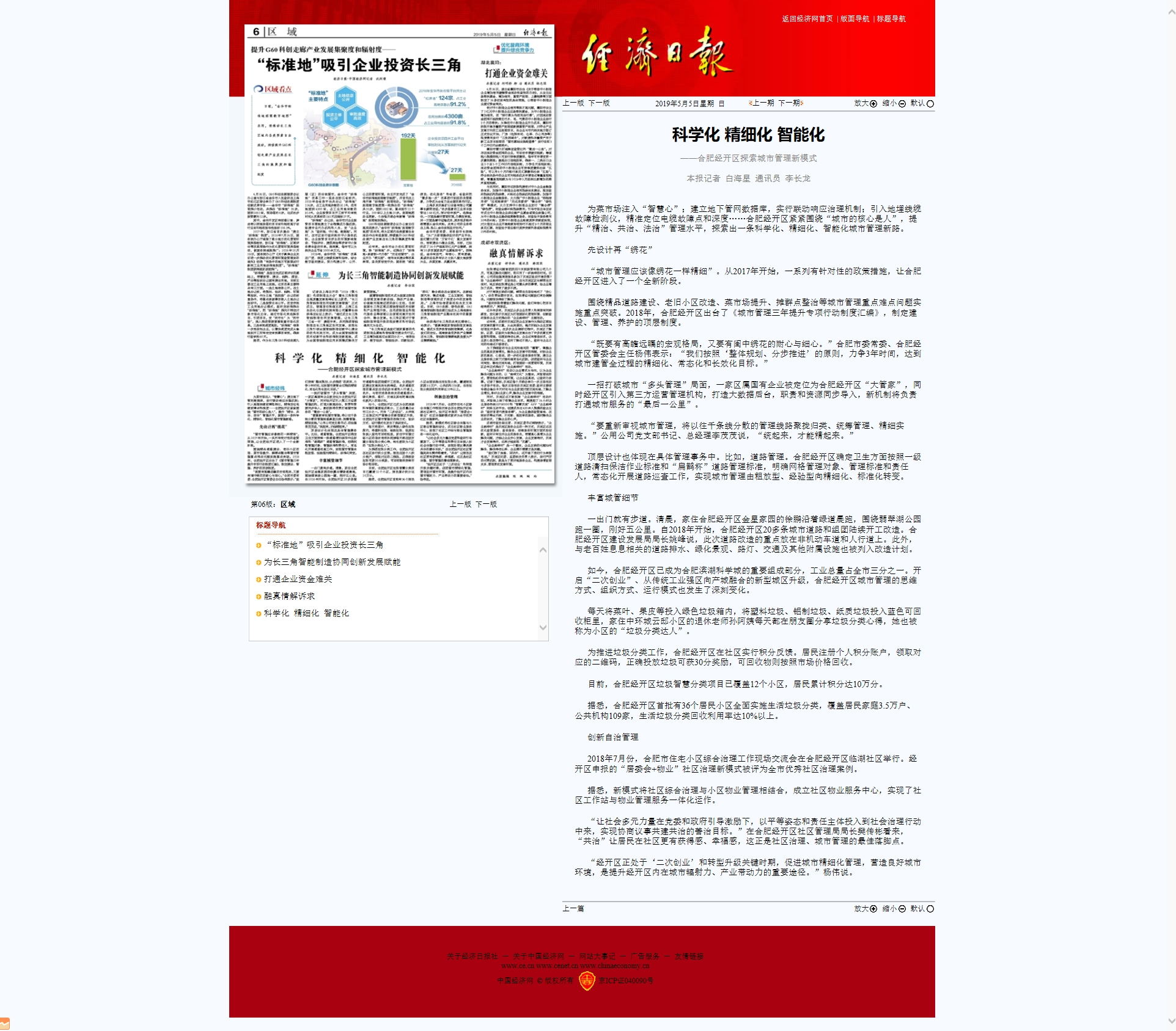 经济日报:5月5日第6版:科学化 精细化 智能化 合肥经开区探索城市管理新模式