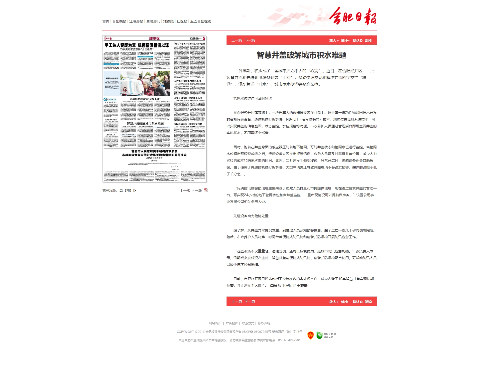 合肥日报5月24日第5版:智慧井盖破解城市积水难题: