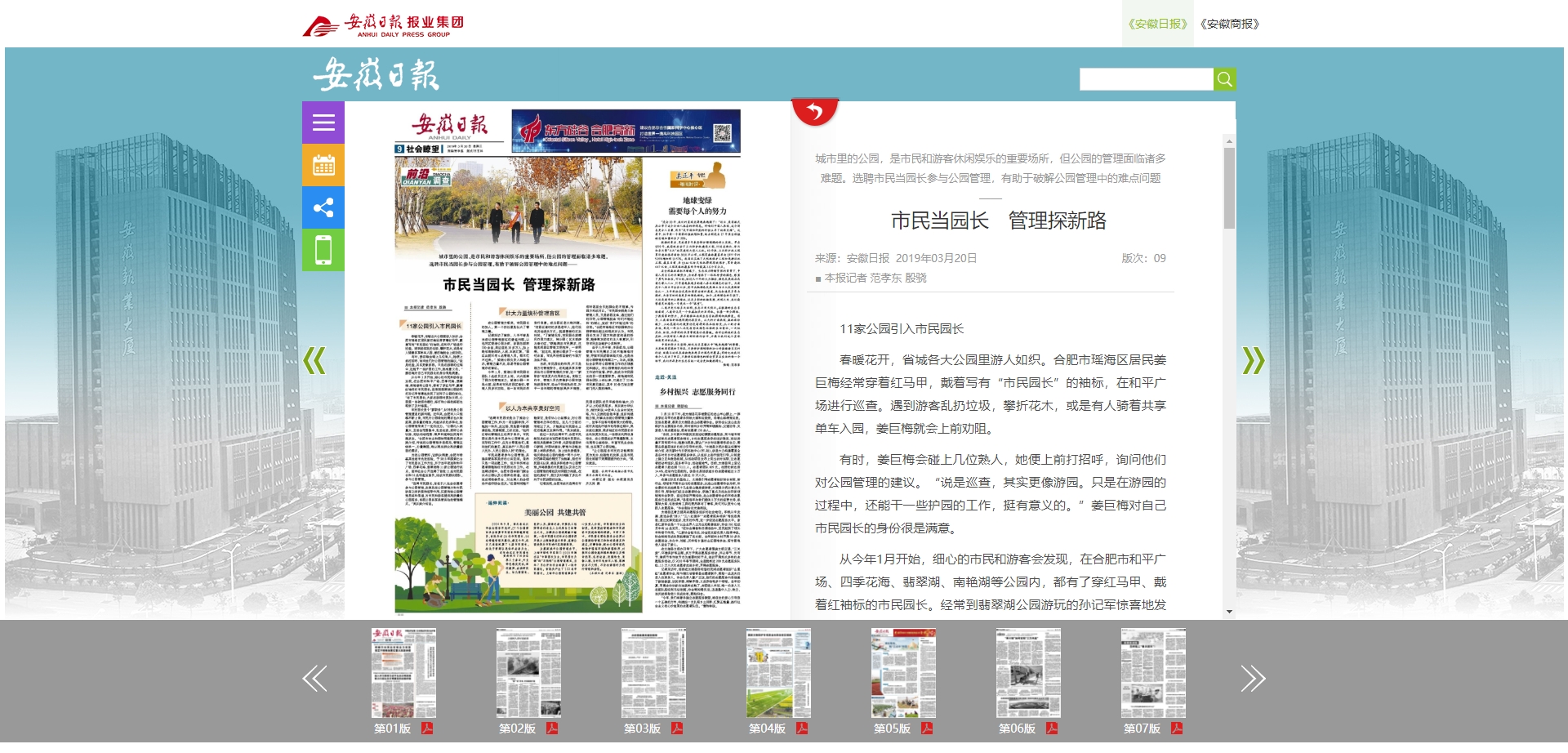 安徽日报 3月20日第9版:市民当园长 管理探新路