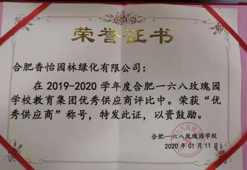 合肥香怡园林绿化有限公司喜获“优秀供应商”称号