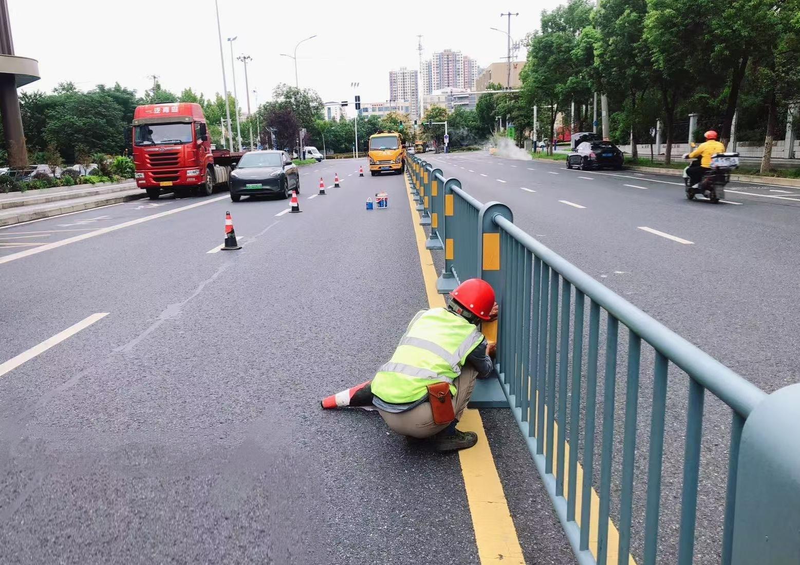 市政中心:道路护栏刷漆焕新,守护市民出行安全