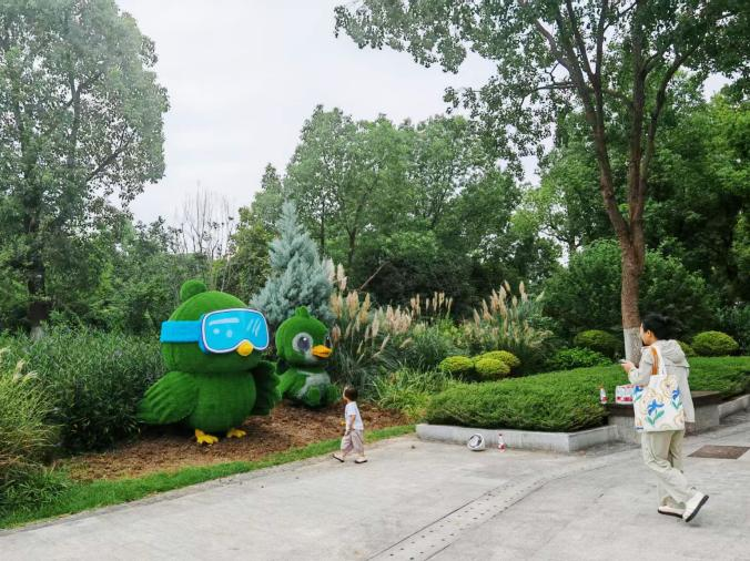 与此同时,南艳湖、翡翠湖、北区三大展区的施工布置也在积极推进中。值得一提的是,南艳湖公园入口处特别打造的“南南”“艳艳”吉祥物绿雕,以绿色文创为创意原点,通过萌态生肖与花展场景的巧妙互动,既呼应园区吉祥物形象,又以鲜活绿态契合"绿色、开放"主题,吸引一众游客驻足观赏。