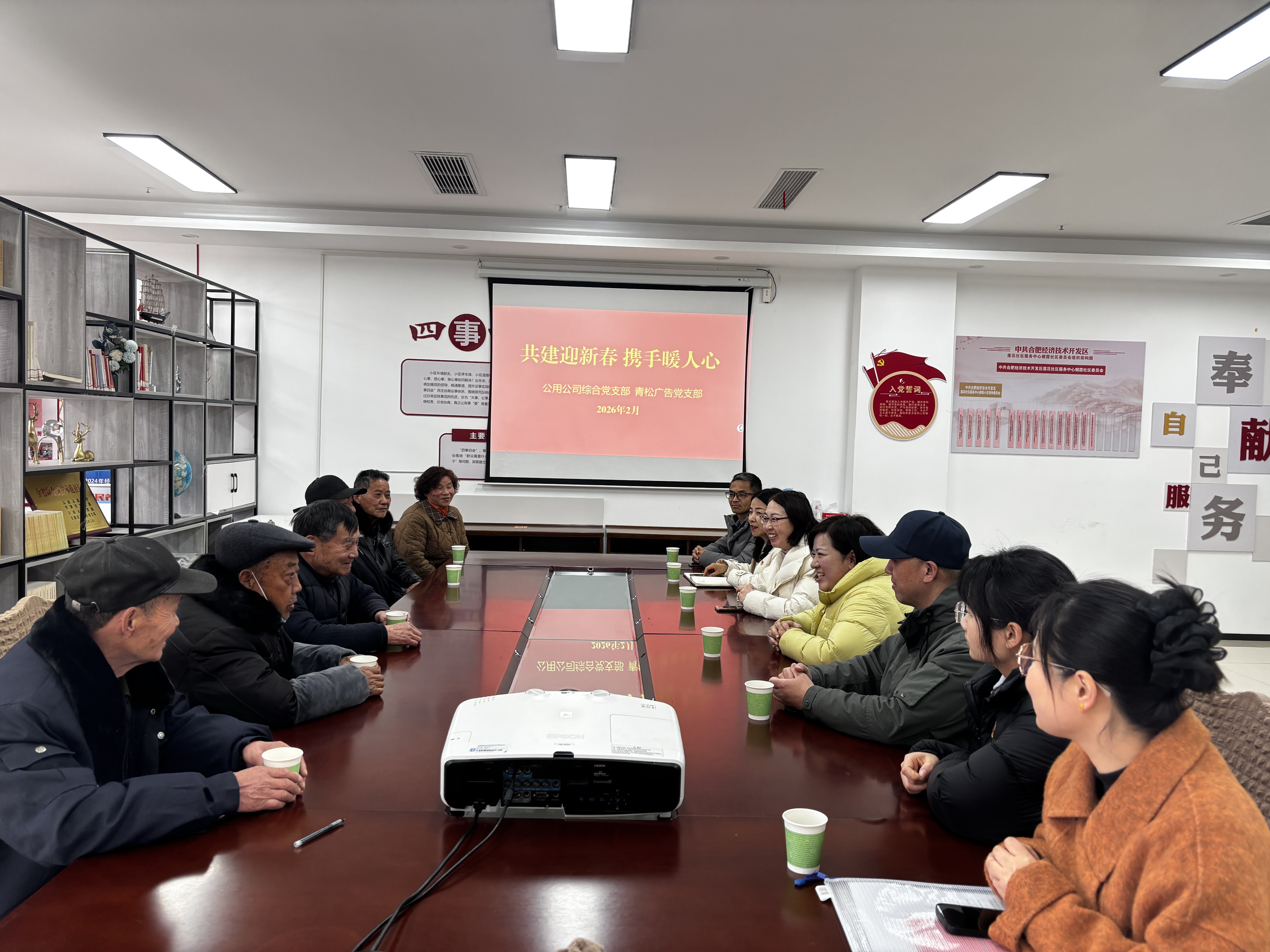 在新春佳节来临之际,为进一步深化结对共建,传递组织温暖,2月10日下午,公用公司综合党支部与共建联系单位安徽青松广告装饰有限公司党支部赴朝霞居民区开展2026年春节慰问活动。公司党委副书记陈玲同支部党员代表参加活动,为6名生活困难党员带来节日的诚挚问候与党组织的深切关怀。