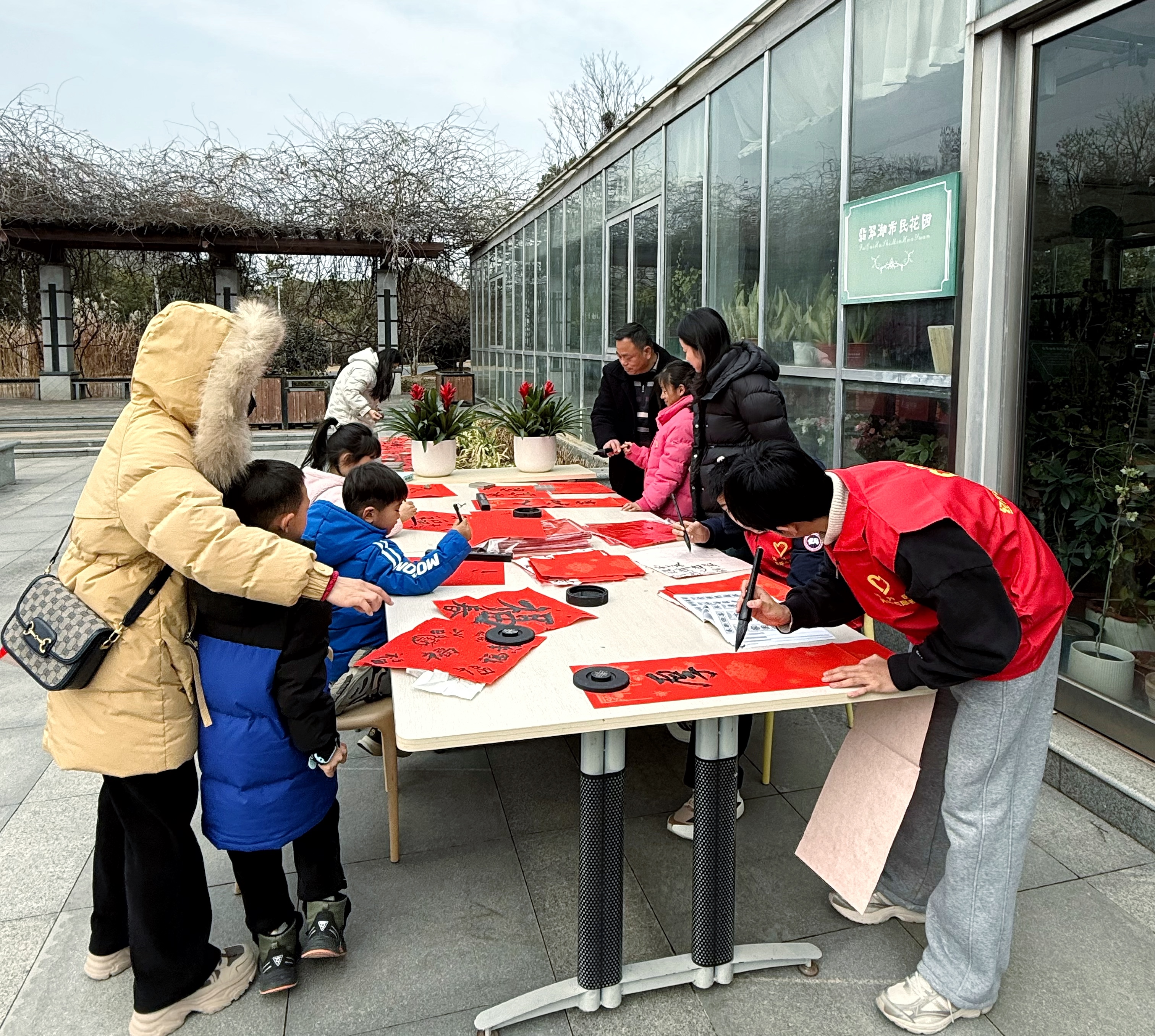 春和景明,墨香满园。新春佳节将至,翡翠湖风景区在市民花园庭院举办“笔墨生香·花海送福”新春春联书写活动。20余名书法爱好者携大小朋友挥毫泼墨,60余对饱含祝福的春联免费赠予市民游客,让大家在氤氲花香中赏书法、领福字,沉浸式感受传统节日的双重雅趣。