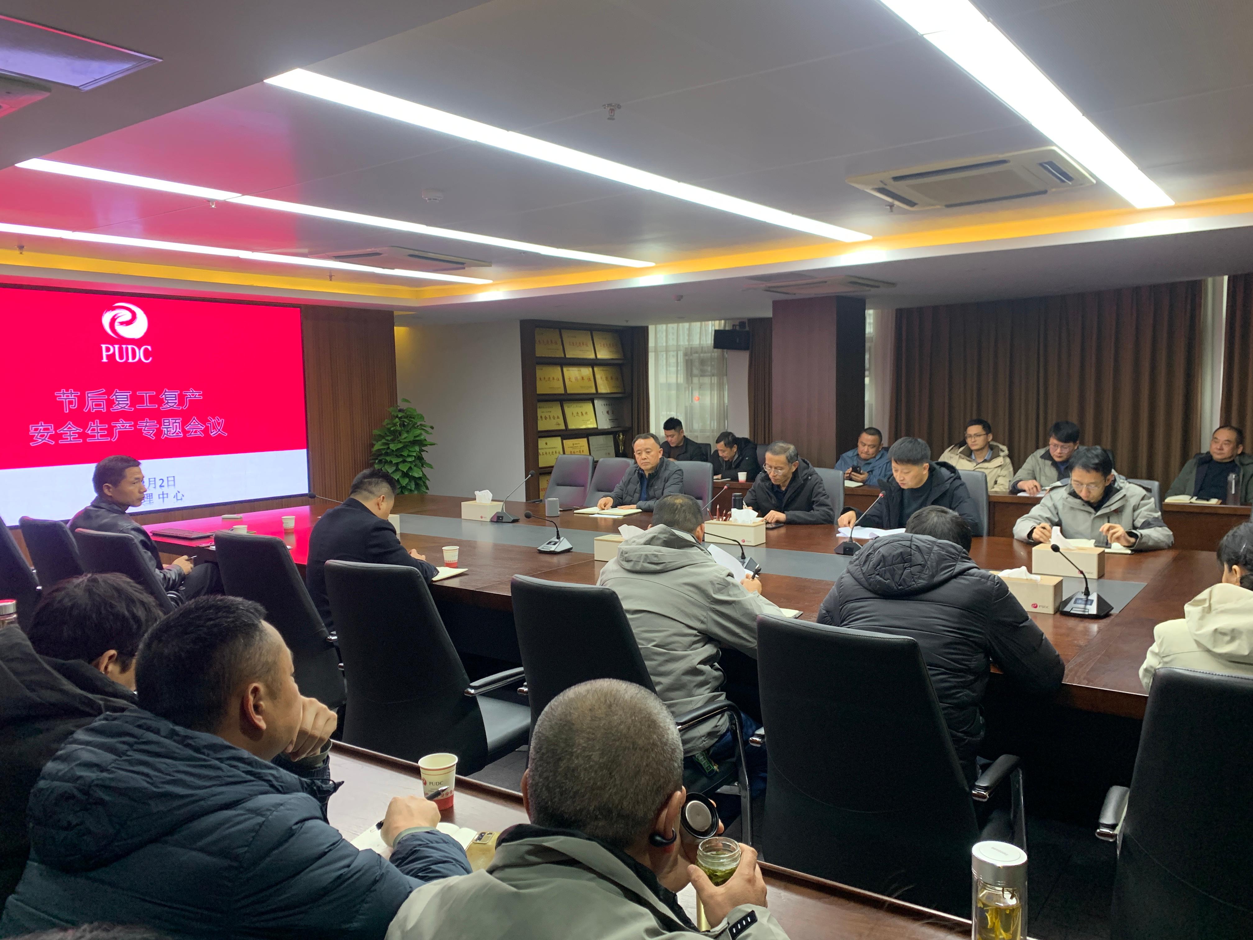 3月2日下午,市政中心召开节后复工复产暨安全生产专题会议,旨在扎实做好春节后复工复产期间安全生产工作,坚决防范各类安全事故发生,确保全年工作平稳开局。公司副总经理姜卫国,市政中心全体工作人员,安徽飞赫建设公司、安徽创升建设公司、合肥香馨建设公司等施工单位相关代表参加会议。